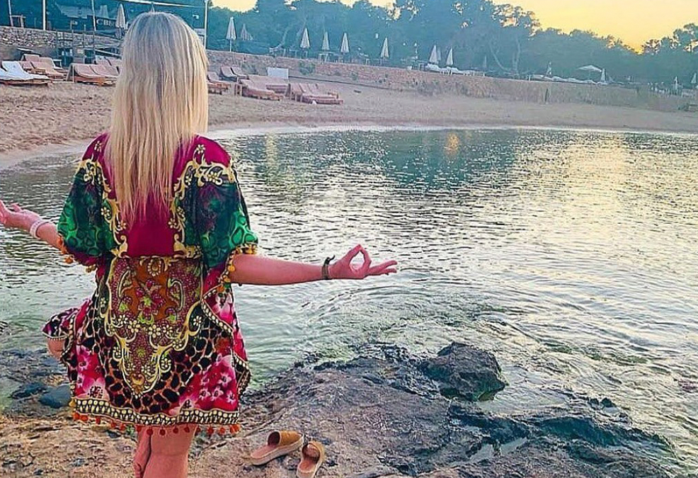 Foto: Tratándome bien frente al agua de Cala Bassa (Ibiza)